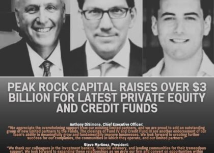 – Peak Rock Capital LLC announced the final closing of Peak Rock Capital Fund IV