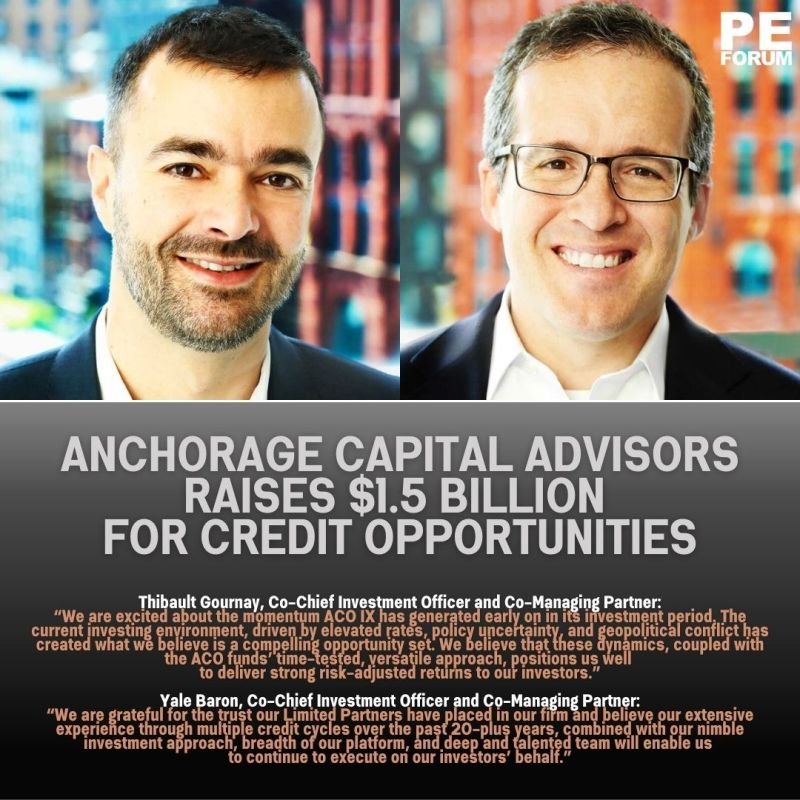 – Anchorage announced the final close of Anchorage Credit Opportunities Fund IX (“ACO IX”) with $1.5 billion in commitments, surpassing its $1.25 billion hard cap.