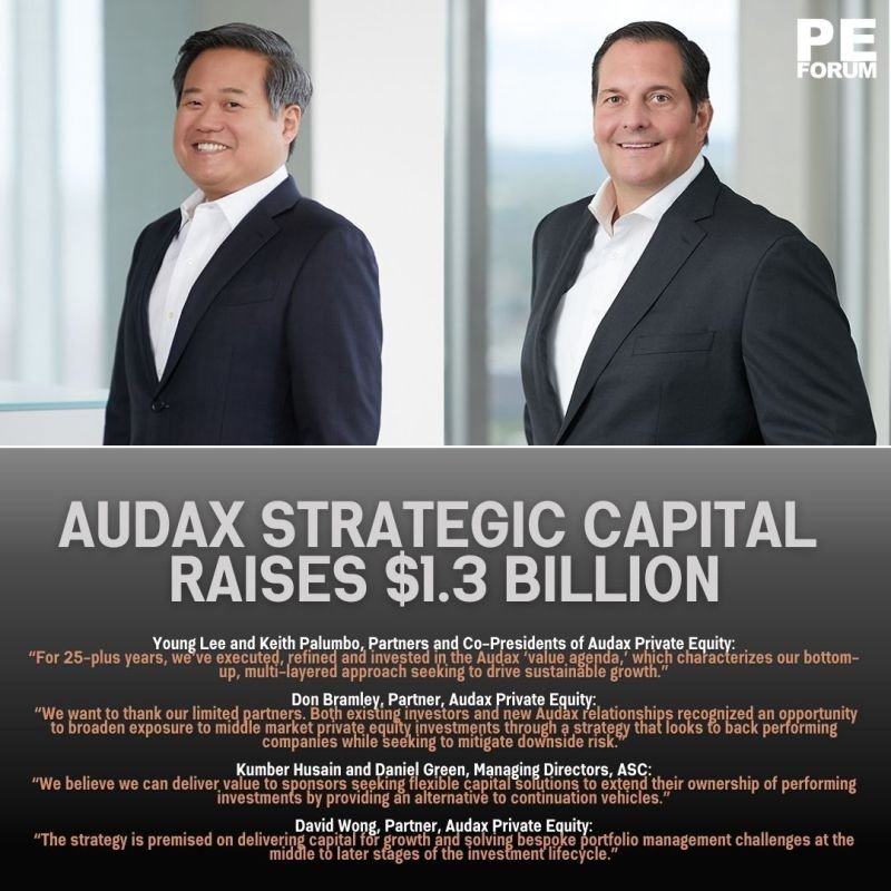 – Audax Strategic Capital (ASC), part of the Audax Private Equity platform, closed its inaugural Audax Private Equity Solutions Fund above target.