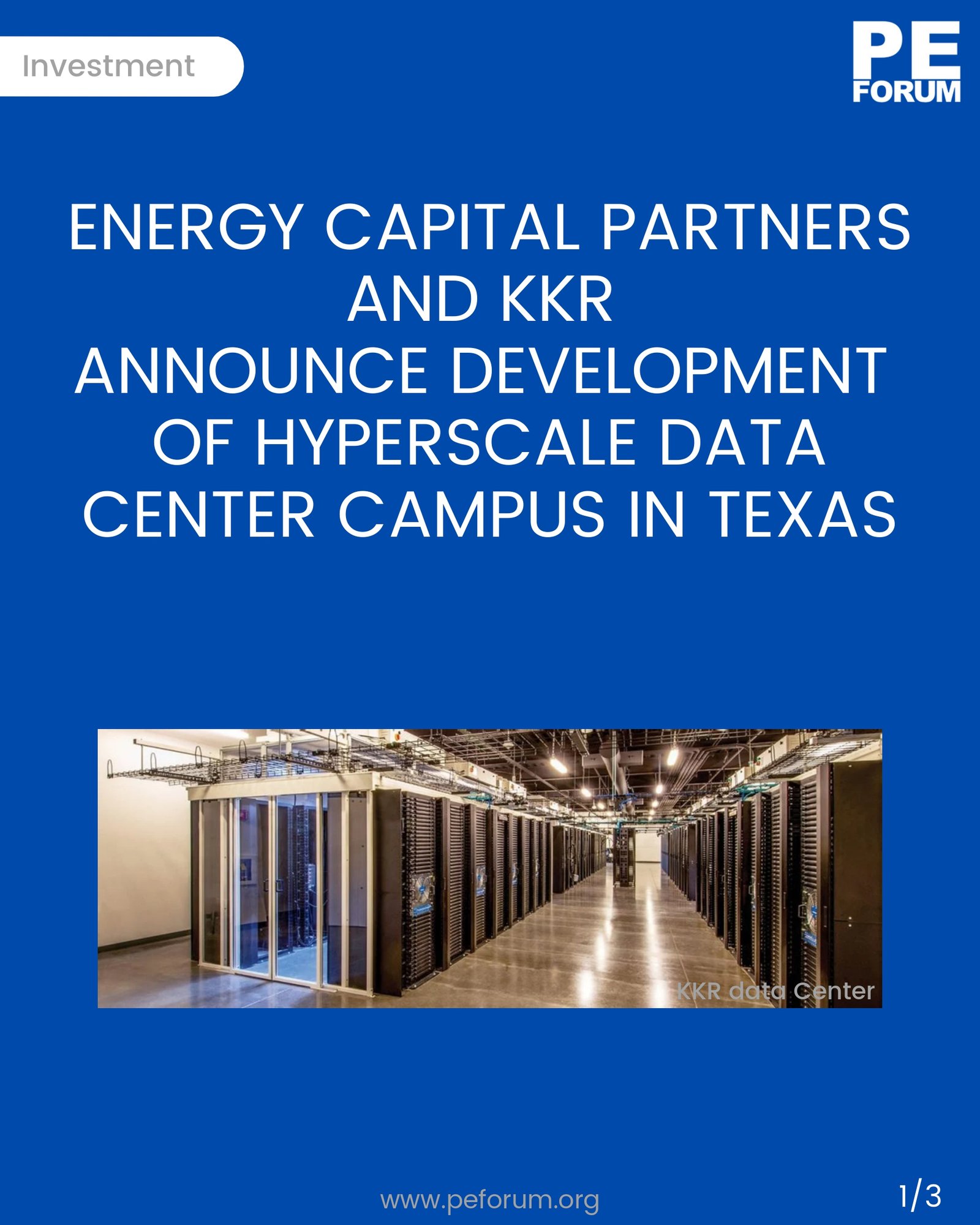 – Energy Capital Partners (ECP) and KKR announced a new 190 MW hyperscale data center campus in Bosque County, Texas.
