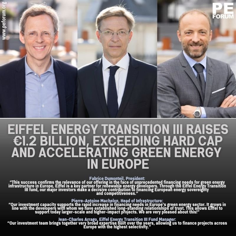 – Eiffel Investment Group successfully raises the Eiffel Energy Transition III fund, reaching its hard cap of €1.2 billion, surpassing its initial target of €1 billion.