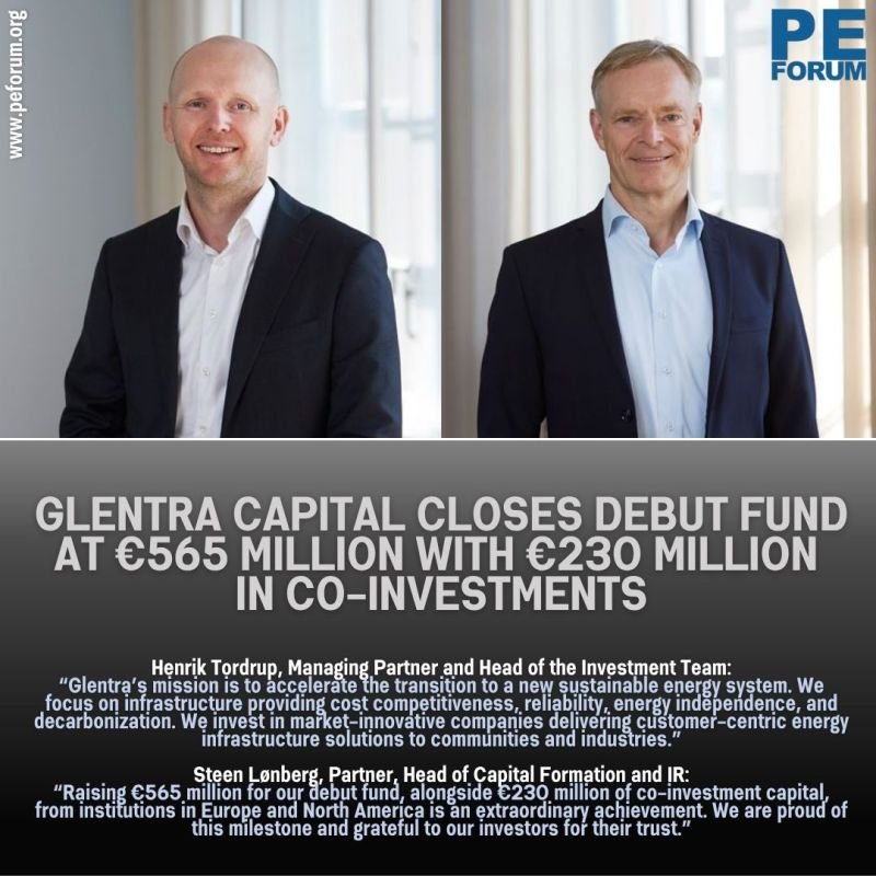 – Glentra Capital completed the final close of its debut fund, Glentra Fund I, with total commitments of €565 million and an additional €230 million earmarked for co-investments.