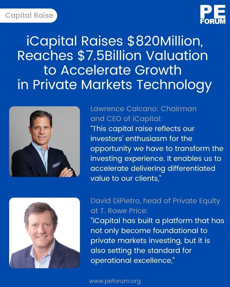 – “The proceeds from this capital raise will be strategically deployed to accelerate our acquisition efforts… and advance the tools and solutions we provide,” said Michael Kushner, CFO of iCapital.