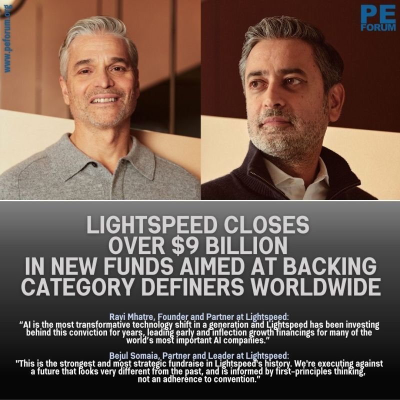 – Lightspeed Venture Partners announced the closing of more than $9 billion in committed capital across six highly selective investment vehicles