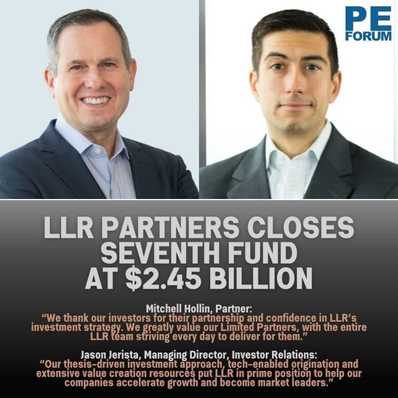– LLR Partners, a lower middle market private equity firm, has closed LLR Equity Partners VII, L.P. (LLR 7) at $2.45 billion.