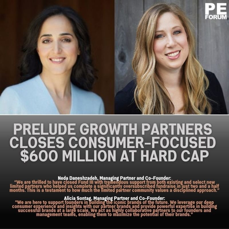 – Prelude Growth Partners announced the first and final close of its third fund, Prelude Growth Partners III, L.P., with $600 million in total commitments.
