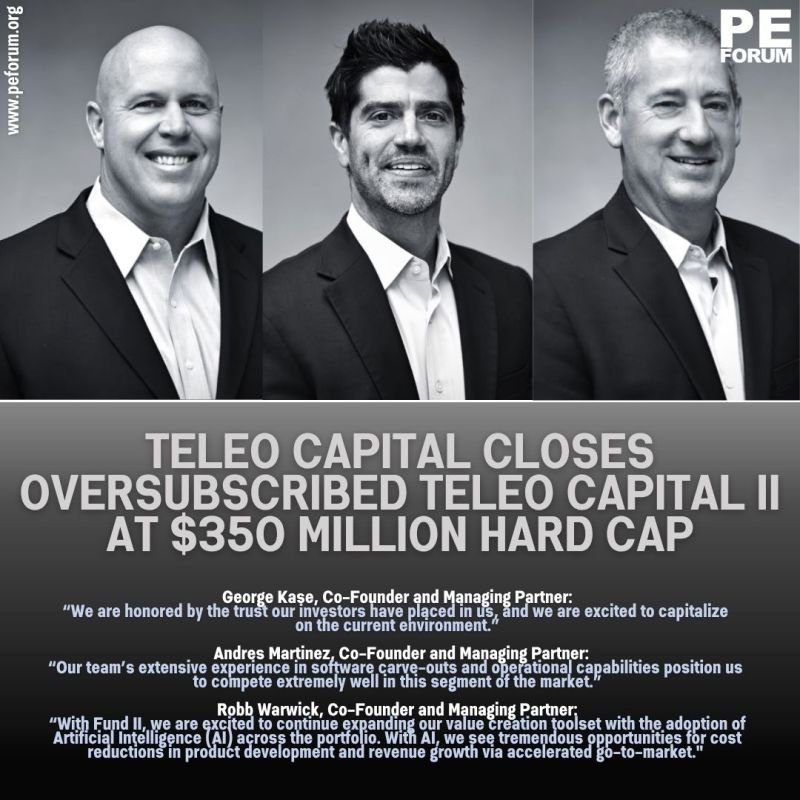 – TELEO announced the final close of TELEO Capital II (“Fund II”) at its hard cap of $350 million in Limited Partner capital commitments.