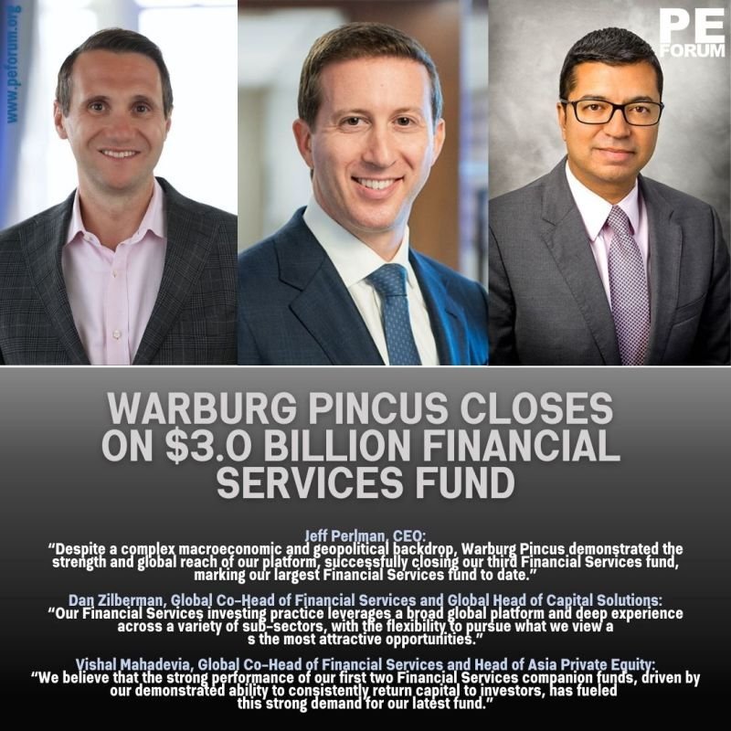 – Warburg Pincus announced the successful close of Warburg Pincus Financial Sector III, L.P. (WPFS III) at $3.0 billion