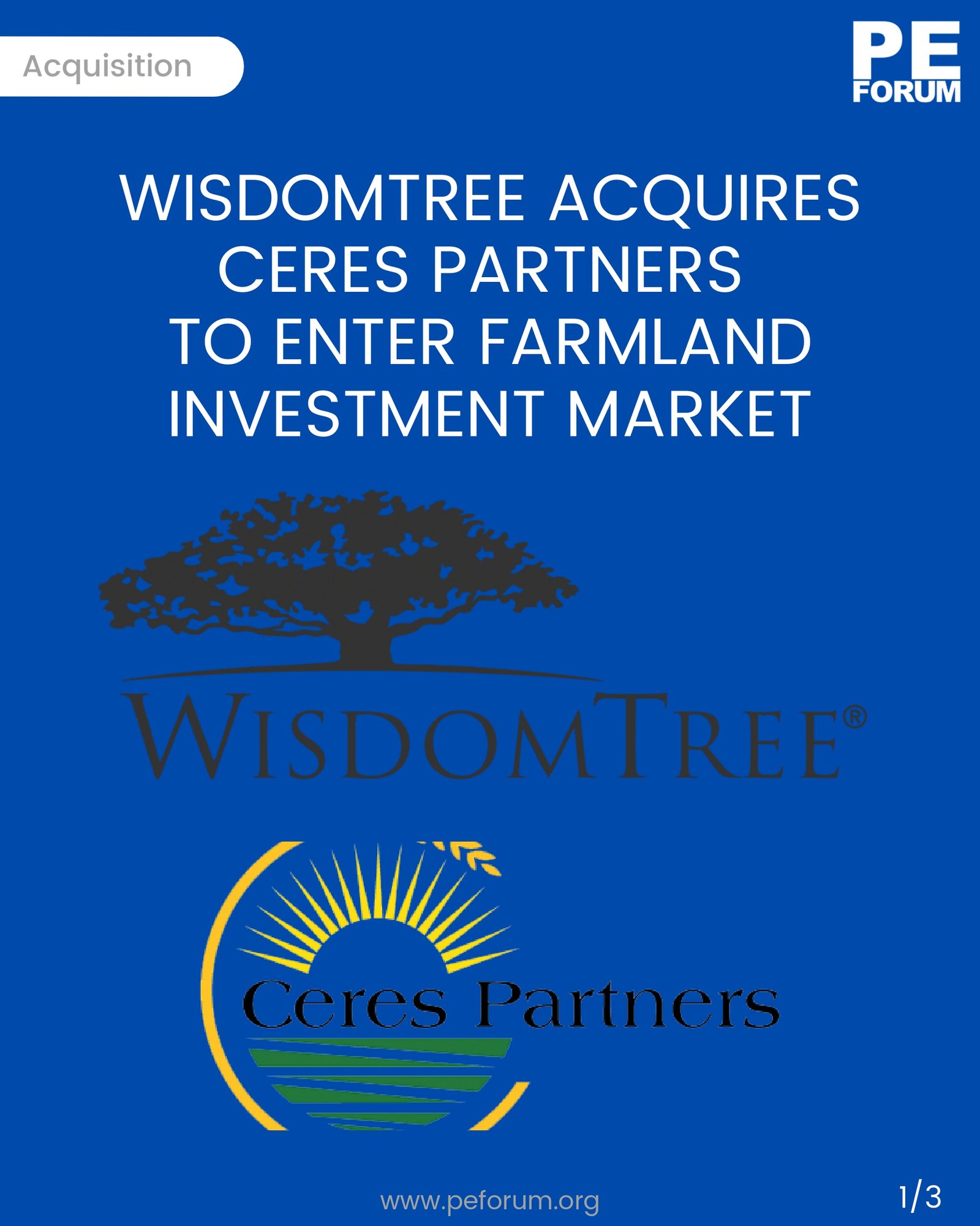 – WisdomTree, Inc. announced the acquisition of Ceres Partners, LLC, a U.S.-based alternative asset manager specializing in farmland investments